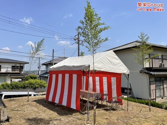 浅口市にて地鎮祭準備なら株式会社繁栄まで・・ 地鎮祭テント準備、地鎮祭に使われる竹・注連縄の販売など大阪・近畿全域での地鎮祭・上棟式・竣工式などの内容・価格に自