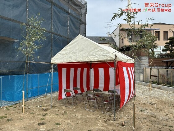 倉敷市で地鎮祭テント設営・準備なら株式会社繁栄まで 日本全国、地鎮祭テントレンタルの事なら株式会社繁栄(地鎮祭専門店地鎮)まで・・ 地鎮祭テント設営・施工 テン