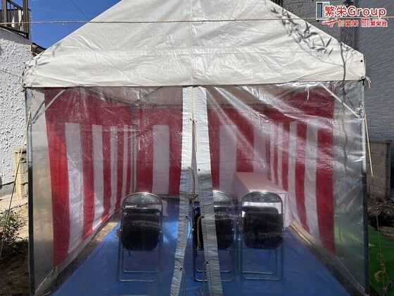 岡山で地鎮祭のご準備なら繁栄グループまで・・地鎮祭準備 地鎮祭の事なら繁栄グループまで・・ 地鎮祭テントレンタルなら当社まで・・ 地鎮祭テント・地鎮祭準備なら近