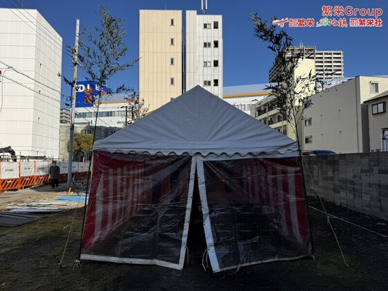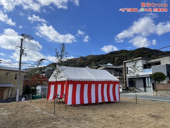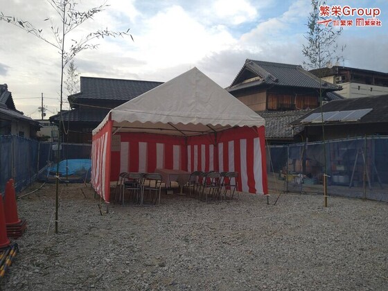 津山市で地鎮祭テント設営業者・準備の事なら株式会社繁栄までお申し付けください。 日本全国、地鎮祭テントレンタル全般は株式会社繁栄(地鎮祭専門店地鎮)まで・・ イ