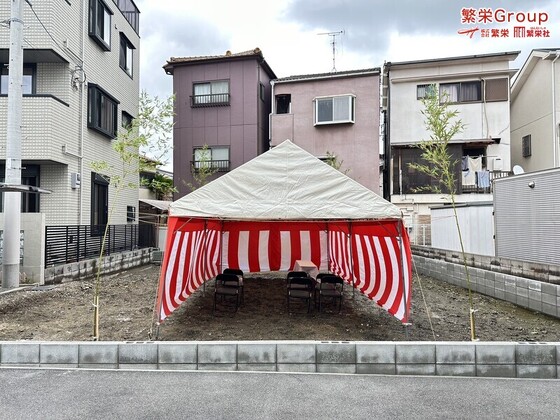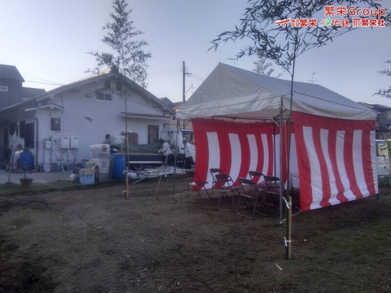 大阪府藤井寺市で地鎮祭テント設営なら株式会社繁栄 日本全国、地鎮祭レンタルの事なら株式会社繁栄(地鎮祭専門店地鎮)まで・・ 地鎮祭テント設営・施工 テントレンタ