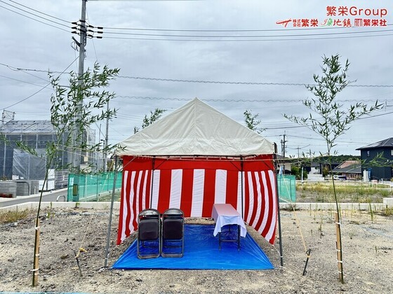 阪南市で地鎮祭レンタルの事なら株式会社繁栄(地鎮祭専門店地鎮)まで・・ 地鎮祭テント設営・施工 テントレンタルなら株式会社繁栄(地鎮祭専門店 地鎮)まで ( ´