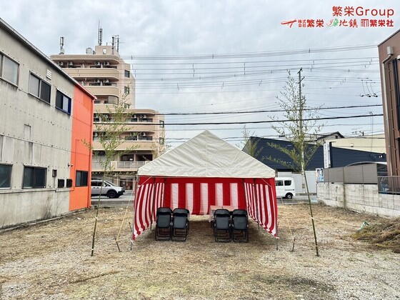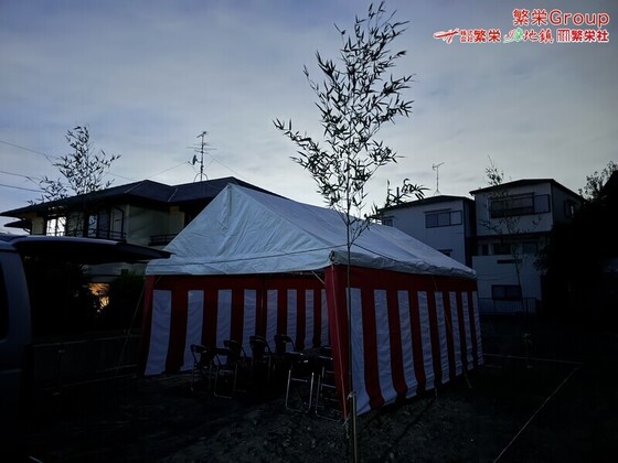 東大阪市で地鎮祭テント設営・準備なら株式会社繁栄まで 日本全国、地鎮祭テントレンタルの事なら株式会社繁栄(地鎮祭専門店地鎮)まで・・ 地鎮祭テント設営・施工 テ