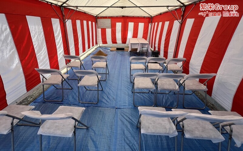 地鎮祭・テント・レンタルの事なら大阪の地鎮祭業者 繁栄グループ まで 地鎮祭ご依頼の際は Webにて「地鎮祭セット申込書」と検索して頂き 申込書をダウンロードして頂ければ幸いです。地鎮祭の申込書なら大阪の繁栄へ 株式会社繁栄はテントレンタル・式典&地鎮祭レンタル・地鎮祭セット 引き渡しセレモニー・テープカット・バルーンリリースの準備にて 繁栄スタッフ一同、工事の安全と無事・令和の繁栄を祈願致します。。。。 感謝 |