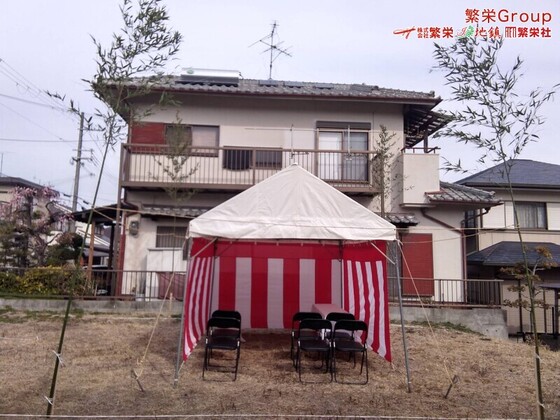 田尻町・熊取町で現場打ち合わせ用テント施工なら株式会社繁栄まで・・ 熊取町にて地鎮祭施工専門業者なら繁栄グループの繁栄・地鎮までお申し付けください。お客様のニー