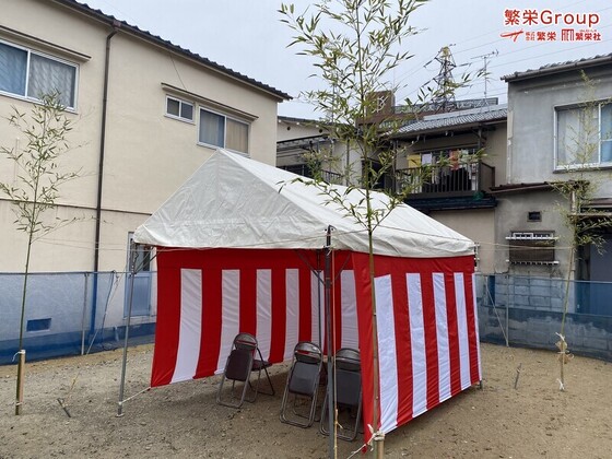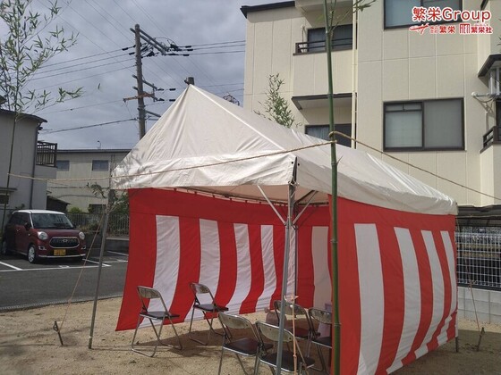 守口市で地鎮祭準備なら株式会社繁栄(地鎮祭専門店地鎮)まで・・ 地鎮祭テント設営・施工 テントレンタルなら株式会社繁栄(地鎮祭専門店 地鎮)まで ( ´∀` )