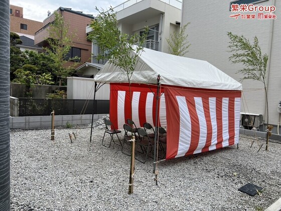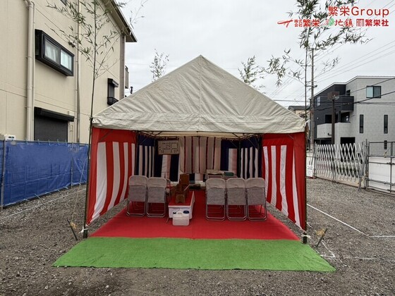 大阪市で地鎮祭レンタルの事なら株式会社繁栄(地鎮祭専門店地鎮)まで・・ 地鎮祭テント設営・施工 テントレンタルなら株式会社繁栄(地鎮祭専門店 地鎮)まで ( ´