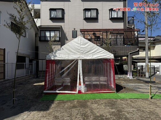 大阪市で地鎮祭テント設営・施工 テントレンタルなら株式会社繁栄(地鎮祭専門店 地鎮)まで ( ´∀` ) 20名様地鎮祭、30名様地鎮祭、各テントサイズのご用意