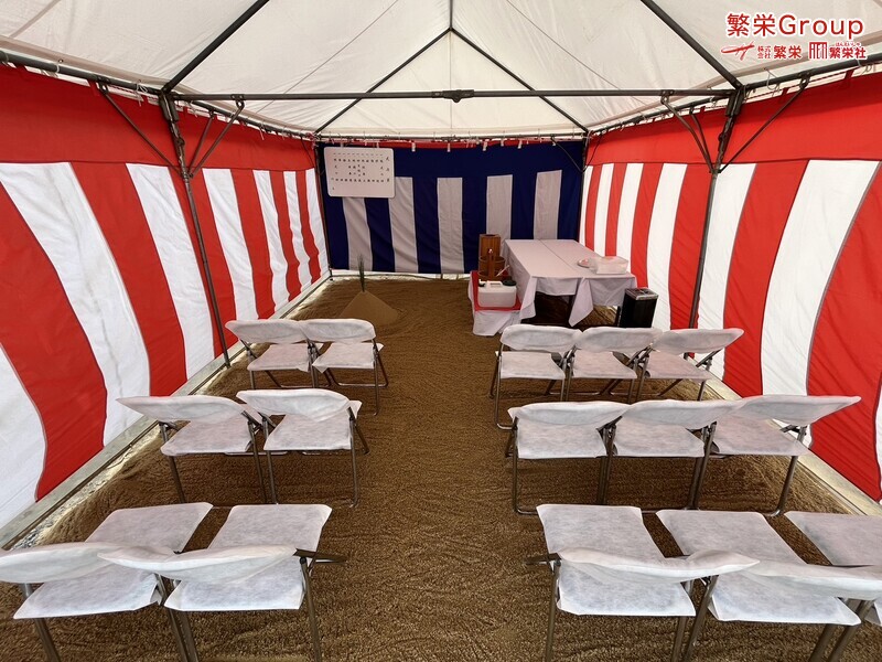 繁栄 はテント&地鎮祭会場設営にて工事の無事・家内繁栄を祈願致します