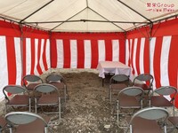 地鎮祭とは、建築工事や土木工事を行う前に、土地の神様を祀り、工事の安全や土地・ 建物の末永い安全を祈願する儀式です。 株式会社繁栄はテントレンタル・式典&地鎮祭レンタル・地鎮祭セット設営 地鎮祭テント・用品全般レンタル致します。