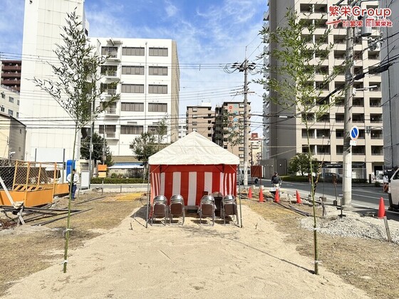 地鎮祭とは、建物の新築や土木工事の起工の際などにその土地の神様を祀り工事の無事進行・完了と土地・建造物が末長く安全堅固であることを繁栄祈願するためにおこなわれる祭りで、国土の守護神である大地主神(おおとこぬしのかみ)と、その地域の神様である産土神(うぶすなのかみ)、その土地の神々である「此の地を宇志波伎坐大神(うしはきますおおかみ)等」をお祀りします。