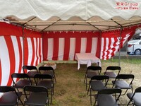 地鎮祭とは、建築工事や土木工事を行う前に、土地の神様を祀り、工事の安全や土地・ 建物の末永い安全を祈願する儀式です。 株式会社繁栄はテントレンタル・式典&地鎮祭レンタル・地鎮祭セット設営 地鎮祭テント・用品全般レンタル致します。