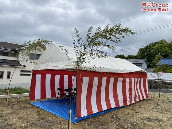 堺市南区桃山台にて地鎮祭テントの施工・大阪でスポットクーラーレンタルなら株式会社繁栄(地鎮祭専門店 地鎮)まで ( ´∀` ) ゴールデンウィーク中も営業致して