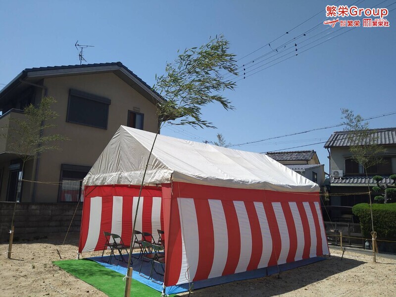 繁栄 はテント&地鎮祭会場設営にて工事の無事・家内繁栄を祈願致します
