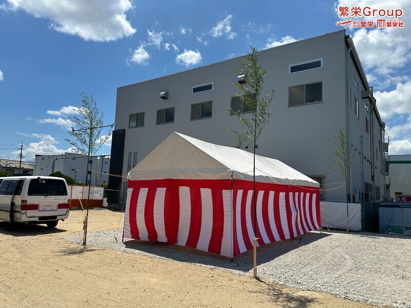 地鎮祭とは、建築工事や土木工事を行う前に、土地の神様を祀り、工事の安全や土地・ 建物の末永い安全を祈願する儀式です。 株式会社繁栄はテントレンタル・式典&地鎮祭レンタル・地鎮祭セット設営 地鎮祭テント・用品全般レンタル致します。