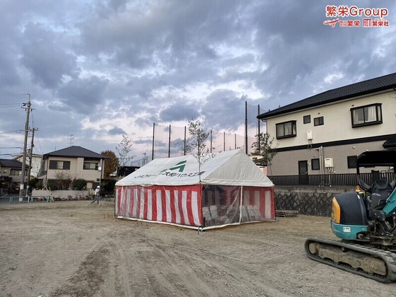 大阪府にて地鎮祭準備させて頂きました。地鎮祭業者なら株式会社繁栄まで 地鎮祭テント設営・テントレンタル・四方竹販売・地鎮祭テント準備なら地鎮祭専門店の地鎮まで