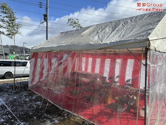 島本町にて地鎮祭施工専門業者なら繁栄グループの繁栄・地鎮までお申し付けください。お客様のニーズにお応えいたします」。。。 テントレンタル・スポットクーラーレンタ