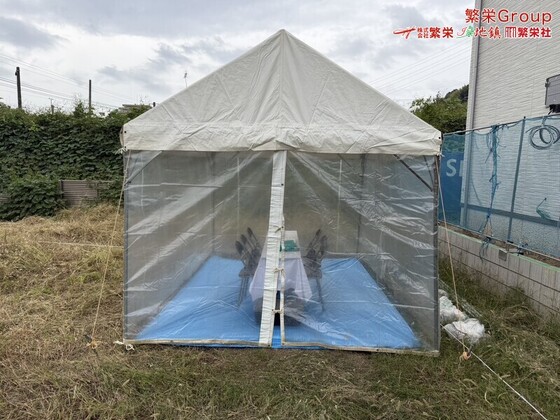 島本町にて地鎮祭テント設営・施工 テントレンタルなら株式会社繁栄(地鎮祭専門店 地鎮)まで ( ´∀` ) 20名様地鎮祭、30名様地鎮祭、各テントサイズのご用