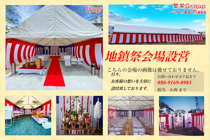 地鎮祭・イベントの事ならおまかせ!テント・テーブル・備品のレンタル、会場設営・撤去。大阪・兵庫・奈良・近畿・全国対応の繁栄まで。