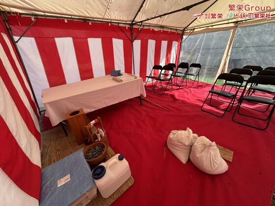 吹田市で地鎮祭レンタルの事なら株式会社繁栄(地鎮祭専門店地鎮)まで・・ 地鎮祭テント設営・施工 テントレンタルなら株式会社繁栄(地鎮祭専門店 地鎮)まで ( ´