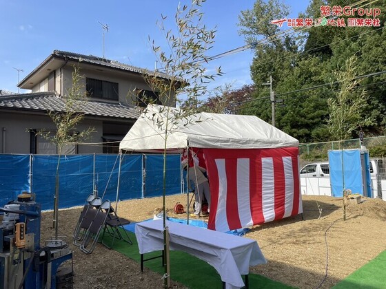 高槻市で地鎮祭レンタルの事なら株式会社繁栄(地鎮祭専門店地鎮)まで・・ 地鎮祭テント設営・施工 テントレンタルなら株式会社繁栄(地鎮祭専門店 地鎮)まで ( ´