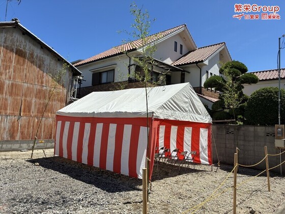 佐賀市でテントレンタル・四方竹レンタル・地鎮祭テント準備・地鎮祭設営業者なら繁栄まで 地鎮祭テント設営レンタルなら地鎮祭施工の株式会社繁栄まで 繁栄事例紹介にて