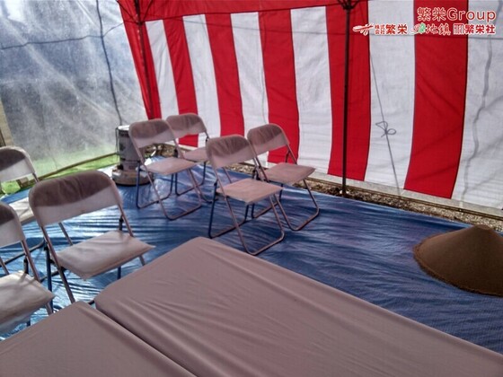 熊谷市で地鎮祭テント設営・準備の事なら株式会社繁栄までお申し付けください。 日本全国、地鎮祭テントレンタル全般は株式会社繁栄(地鎮祭専門店地鎮)まで・・ イベン