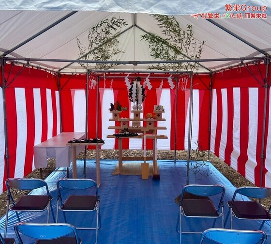 さいたま市で地鎮祭レンタルの事なら株式会社繁栄(地鎮祭専門店地鎮)まで・・ 地鎮祭テント設営・施工 テントレンタルなら株式会社繁栄(地鎮祭専門店 地鎮)まで (