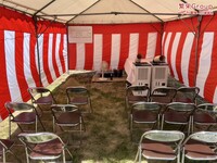 地鎮祭とは、建築工事や土木工事を行う前に、土地の神様を祀り、工事の安全や土地・ 建物の末永い安全を祈願する儀式です。 株式会社繁栄はテントレンタル・式典&地鎮祭レンタル・地鎮祭セット設営 地鎮祭テント・用品全般レンタル致します。