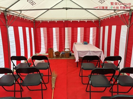竹の準備 縄(注連縄) 紙垂 地鎮祭テントの大きさ 地鎮祭テントの向き 地鎮祭のし袋 表書き 裏書き 水引 地鎮祭費用 お礼 お祝い 玉串料・初穂料(費用) 相場 祭壇 三方 お供え物 酒 鯛 餅 用意する物 地鎮祭祝儀 酒 魚 良い地鎮祭 悪い地鎮祭 地鎮祭の服装(男性・女性) 地鎮祭マナー 地鎮祭挨拶 地鎮祭準備 レンタル 式次第(修祓 降神の儀 献饌 祝詞奏上 清祓の儀 玉串奉奠 撤饌 昇神の儀) 地鎮祭の流れ 氏神 神事 神式 仏式 雨天対応準備 地鎮祭の時間 地鎮祭日 六曜 吉日 大安 先勝 参加人数 神社・神主様手配 地鎮祭はする?しない? テント 紅白幕 地鎮祭費用 祝儀 ご近所の挨拶 棟上げ 上棟式する? 御幣製作・準備 新築 竣工式の事など何なりとお聞き下さい。 地鎮祭・テント設営・各種式典会場設営・イベント会場設営・レンタルの事なら式典サポートの 株式会社 繁栄 へお申し付け下さい。 お客様目線にて年中無休・24時間対応にて営業致しております。
