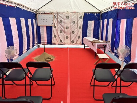 浜松市にて地鎮祭テント設営・施工 テントレンタルなら株式会社繁栄(地鎮祭専門店 地鎮)まで ( ´∀` ) 20名様地鎮祭、30名様地鎮祭、各テントサイズのご用
