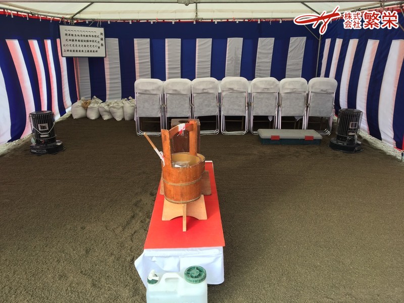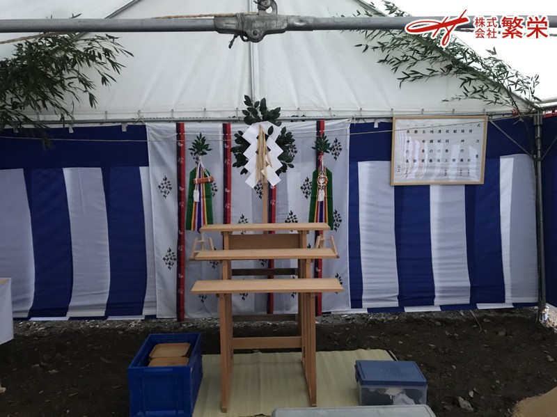 株式会社繁栄は地鎮祭会場設営にて工事の無事・家内繁栄を祈願致します。。。。。。