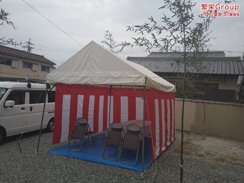 地鎮祭・上棟式・竣工式なら大阪・関西の地鎮祭専門業者株式会社繁栄まで 大阪・兵庫・京都・近畿の皆様に地鎮祭テント・レンタルにてお手伝いを・・ 大阪・近畿で略式地鎮祭18000円〜本格的地鎮祭まで執り行っております。 建築の三大祭式の地鎮祭・上棟式・竣工式の事なら大阪の株式会社繁栄まで・ 近畿で地鎮祭・式典の月間実績500〜800件以上の弊社ですのでご安心下さい。 全国地鎮祭施工実績 No1 安心の株式会社繁栄(全て自社スタッフ施工です。) 暖房器具の搬入・搬出も致します。心温まる地鎮祭に如何ですか? 大阪で地鎮祭テントのことなら 株式会社繁栄 に何なりとお申し付け下さい。 画像の事で問題がある様でしたらお手数をお掛けしますが私、繁栄小西まで お電話ご連絡を頂ければ直ちにに削除致します。皆様に見て頂ければ幸いです。 地鎮祭の写真集の様なご紹介を・・・心がけています。 K2 Agency Japan(不動産全般)繁栄グループ不動産分譲事業部まで・・ 地鎮祭・上棟式・竣工式や各種式典・イベント会場設営・施工なら繁栄へ レンタル商品・式典用の四方竹セット・テント販売・レンタルなら地鎮まで スポットクーラーレンタル・スポットクーラー販売なら株式会社繁栄まで 関西で地鎮祭テントのことなら 株式会社繁栄 に何なりとお申し付け下さい 地鎮祭(大阪・兵庫・京都)で地鎮祭・テントの事なら繁栄まで