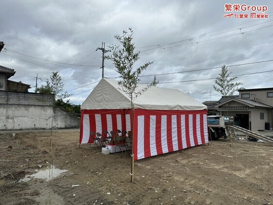 北栄町で地鎮祭テント設営・施工 テントレンタルなら株式会社繁栄(地鎮祭専門店 地鎮)まで ( ´∀` ) 20名様地鎮祭、30名様地鎮祭、各テントサイズのご用意