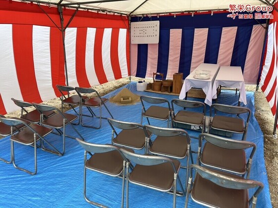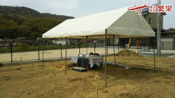 鳥取県にて地鎮祭テント設営・施工 テントレンタルなら株式会社繁栄(地鎮祭専門店 地鎮)まで ( ´∀` ) 20名様地鎮祭、30名様地鎮祭、各テントサイズのご用