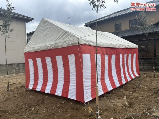 海南市でテントレンタルなら株式会社繁栄 大阪府で地鎮祭レンタルの事なら株式会社繁栄(地鎮祭専門店地鎮)まで・・ 地鎮祭テント設営・施工 テントレンタルなら株式会