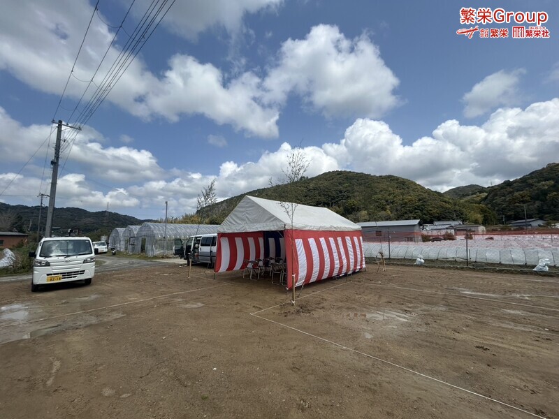 地鎮祭とは、建築工事や土木工事を行う前に、土地の神様を祀り、工事の安全や土地・ 建物の末永い安全を祈願する儀式です。 株式会社繁栄はテントレンタル・式典&地鎮祭レンタル・地鎮祭セット設営 地鎮祭テント・用品全般レンタル致します。