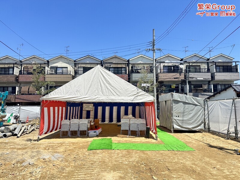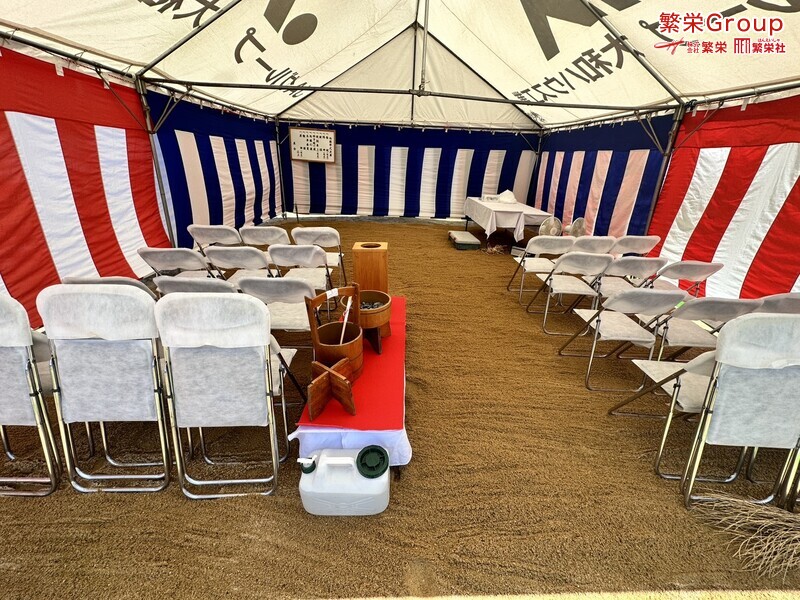 繁栄 はテント&地鎮祭会場設営にて工事の無事・家内繁栄を祈願致します