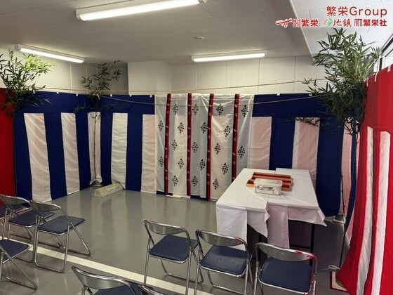 | 竣工式用 備品のレンタル 設備設営・撤去等を 行います。 |